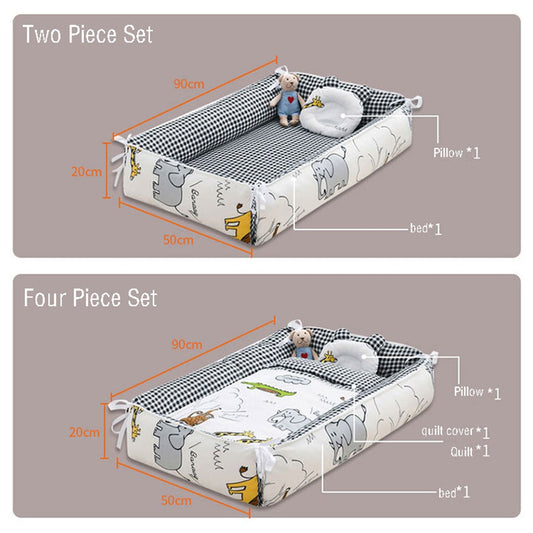 Portable Crib Middle Bed Baby Play Removable Bionic Four PCS Set Cartoon Print